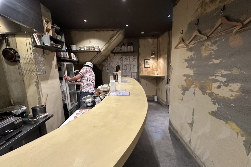 店内は曲線が特徴的なスタンディングカウンターのみでこじんまりとしています。