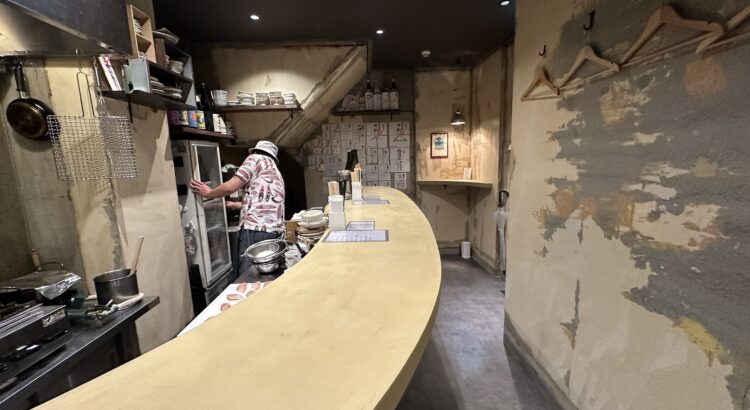 店内は曲線が特徴的なスタンディングカウンターのみでこじんまりとしています。