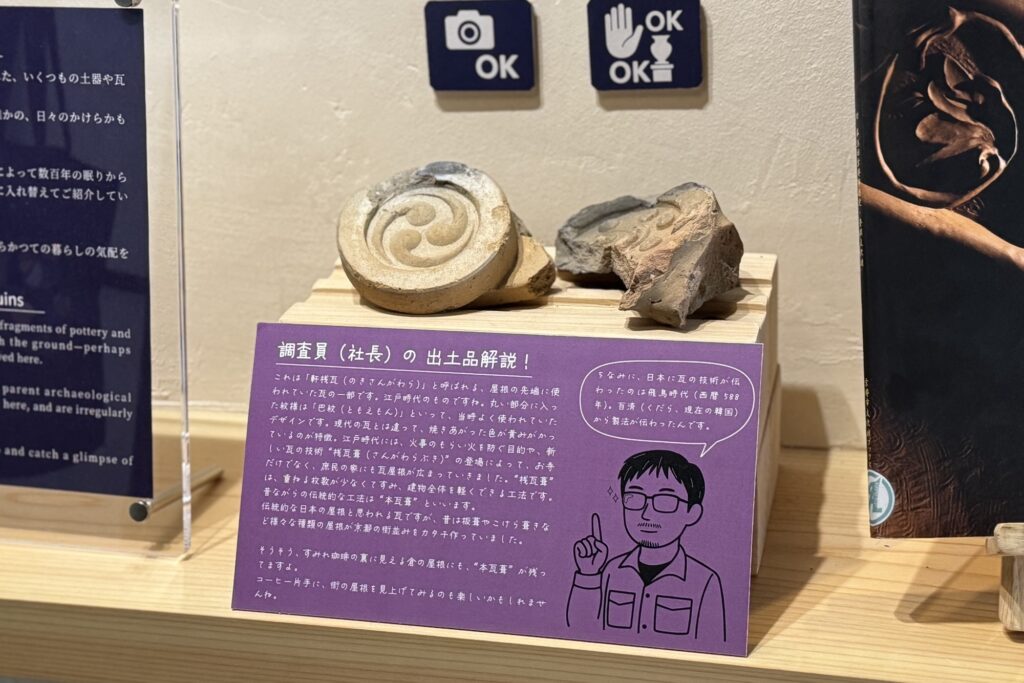 店内には出土品や資料などが飾られており、手に取って楽しめるものもあります。