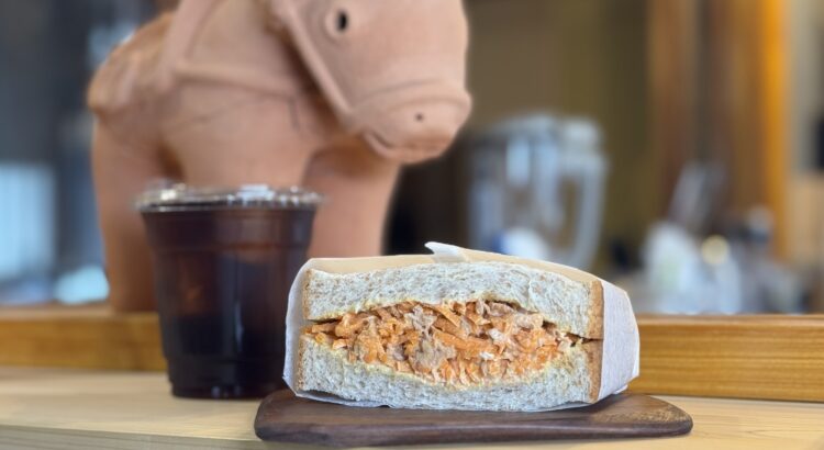 ユニークな名前のアイスコーヒーとサンドイッチのセット。氷出しコーヒーにも変更可能です。サンドウィッチは新鮮野菜が主役で、全粒粉パンの香ばしさが素材の甘みを引き立てます。ボリュームもあるのでモーニングにもちょうどいい。