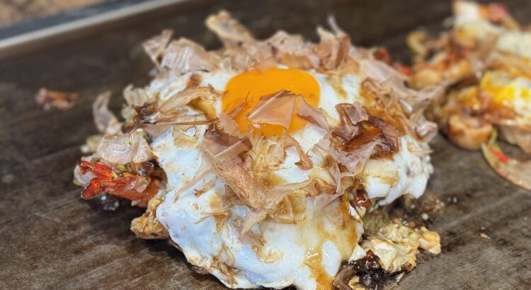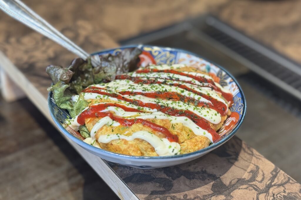 高辻麩屋町にある「鍵屋小路会館」に、お好み焼きを中心とした鉄板料理が楽しめる一軒がオープン。看板メニューのお好み焼きは厚みがありながらフワトロ食感で、濃厚ソースとの相性も抜群。焼きそばやネギ焼きなど多彩な鉄板メニューが揃う一軒です。