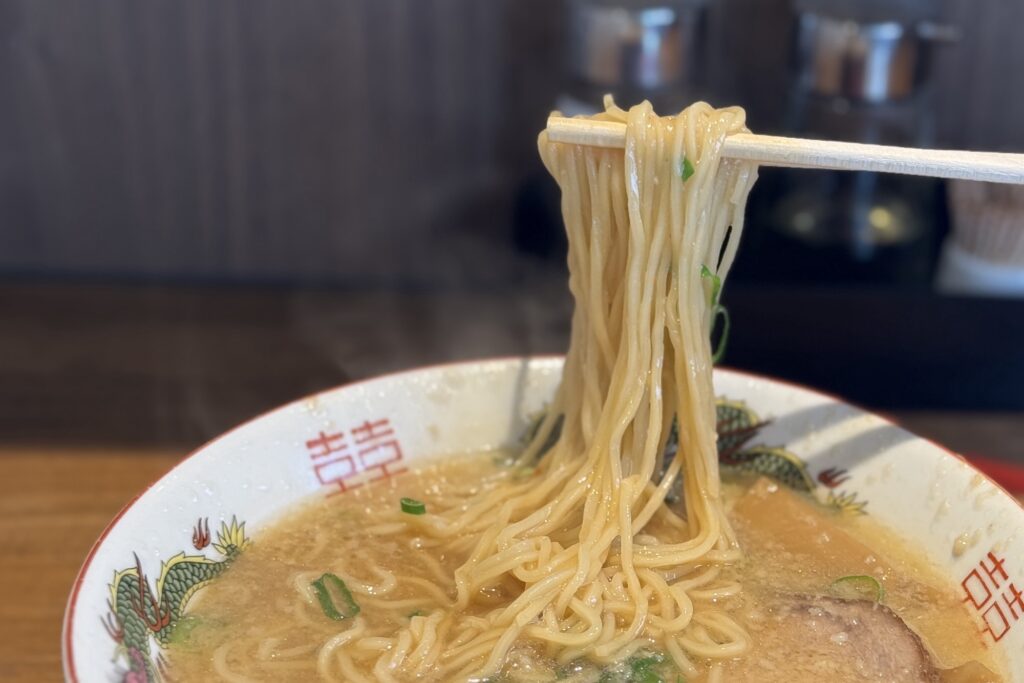 麺はぷつりと歯切れの良い中細ストレート麺。スープともよく合っています。