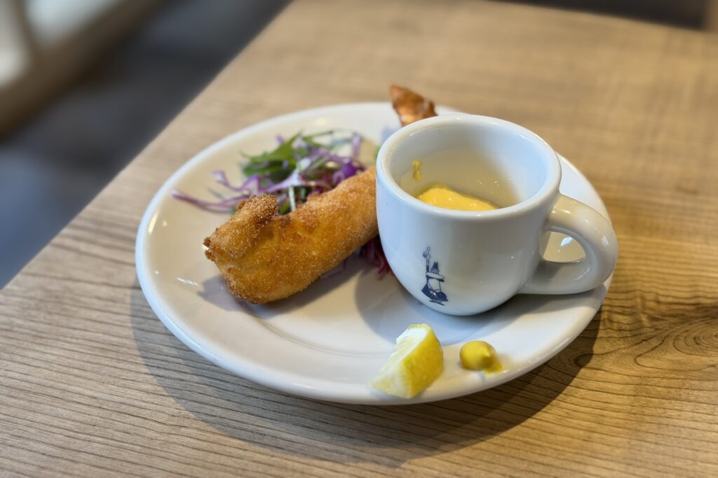 大海老フライは衣がきめ細かくサクッと軽い食感で、中の大海老の存在感をより感じられます。こちらもご飯との相性抜群。