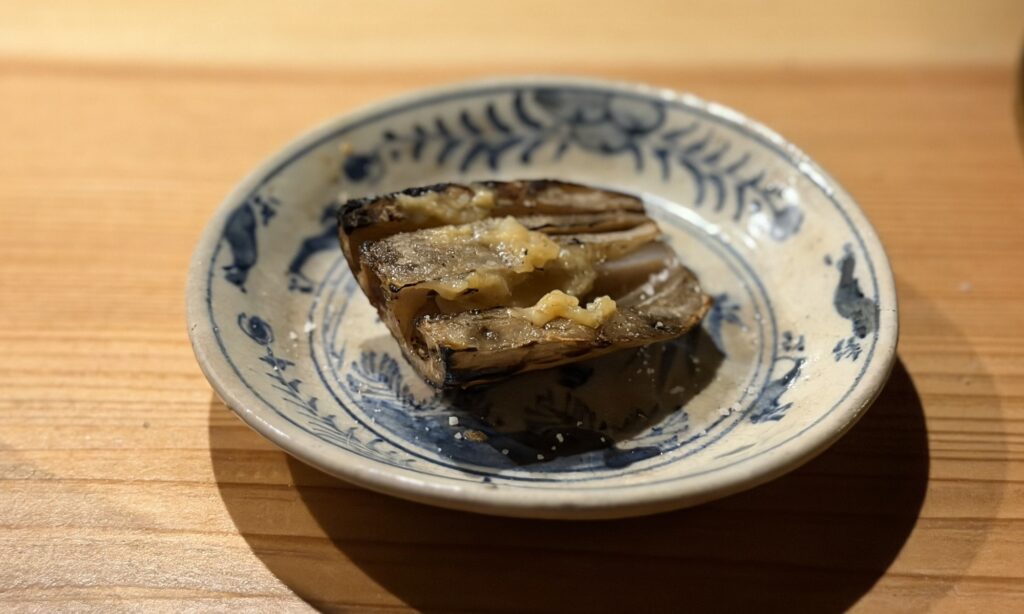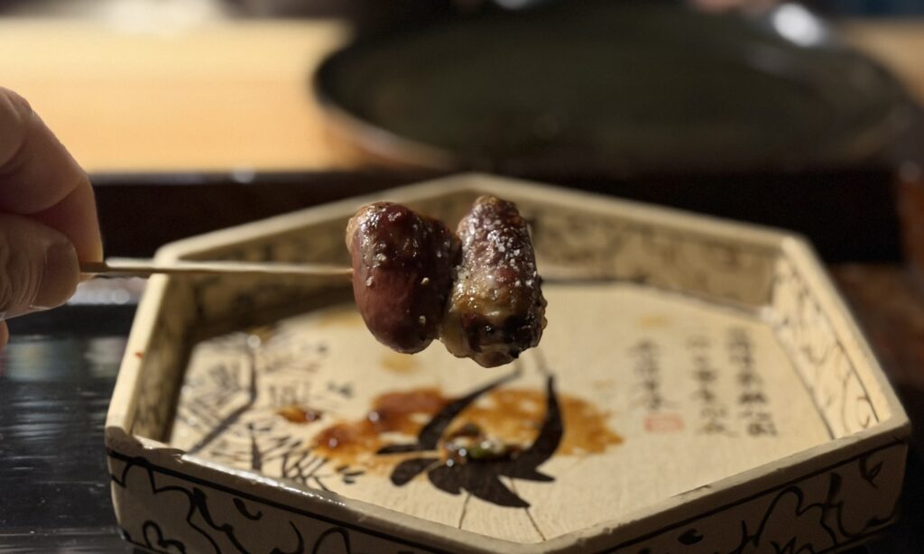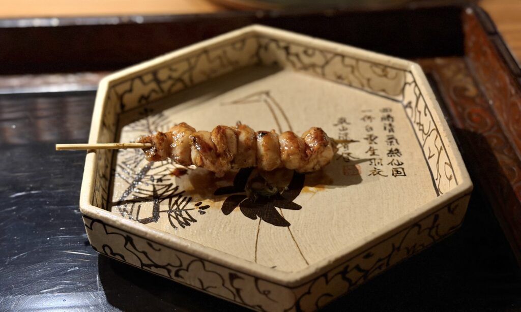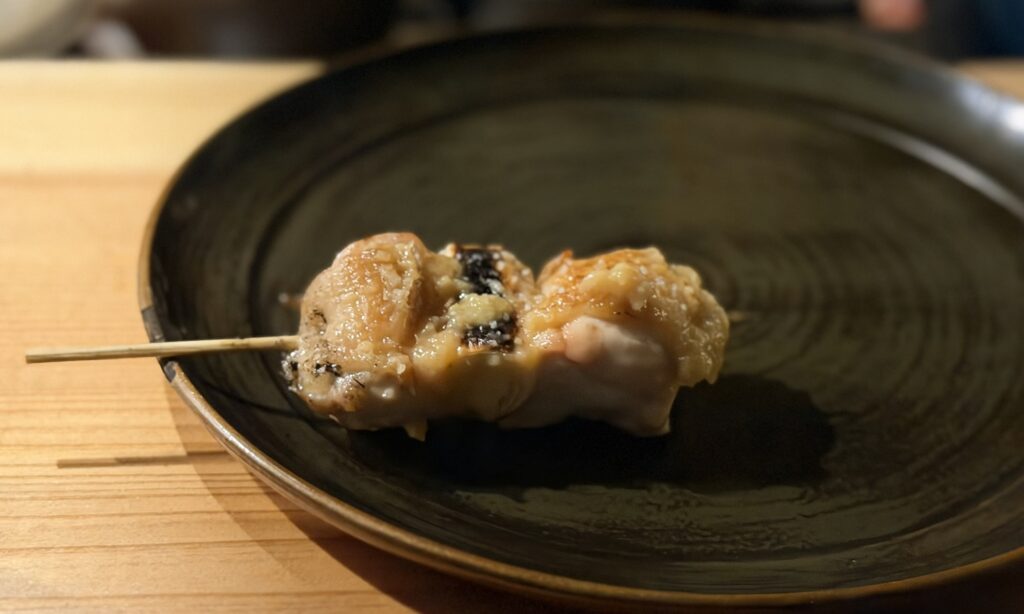 まずは丹波黒どりのねぎま。かなり大ぶりながら絶妙な火入れでふっくらジューシー。塩やタレではなく味噌を合わせているのが新鮮です。