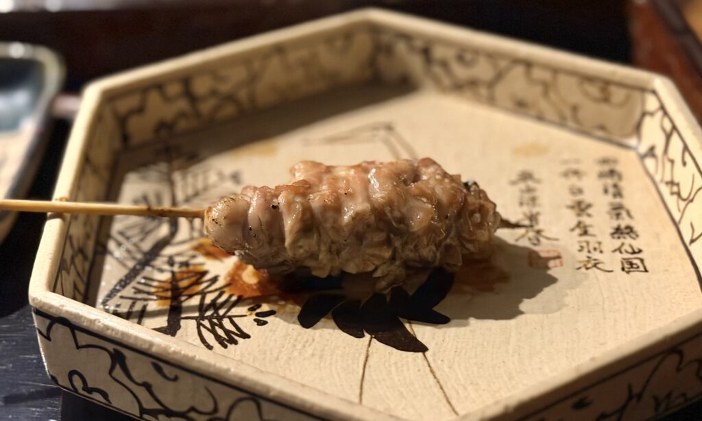 こちらも見事な串打ちの皮。脂が乗っていてお酒ともよく合います。
