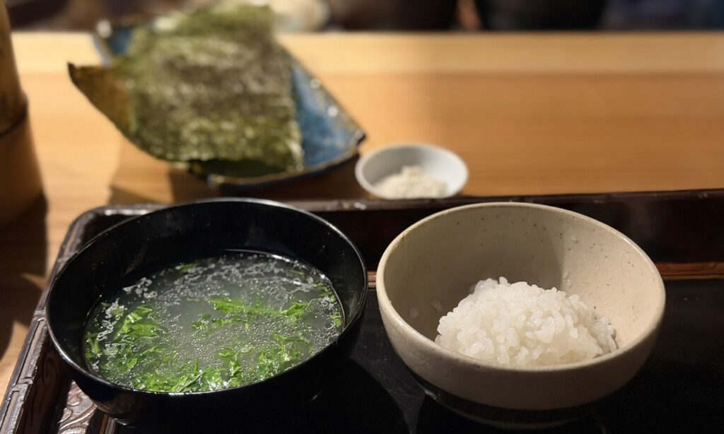 最後の焼鳥は手羽先。この時点でかなり満腹感がありますが、さらに〆ご飯が出てきます。