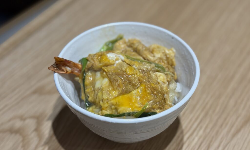 揚げたての天ぷらに出汁の効いた卵がふんわりと絡み、一体感のある味わい。