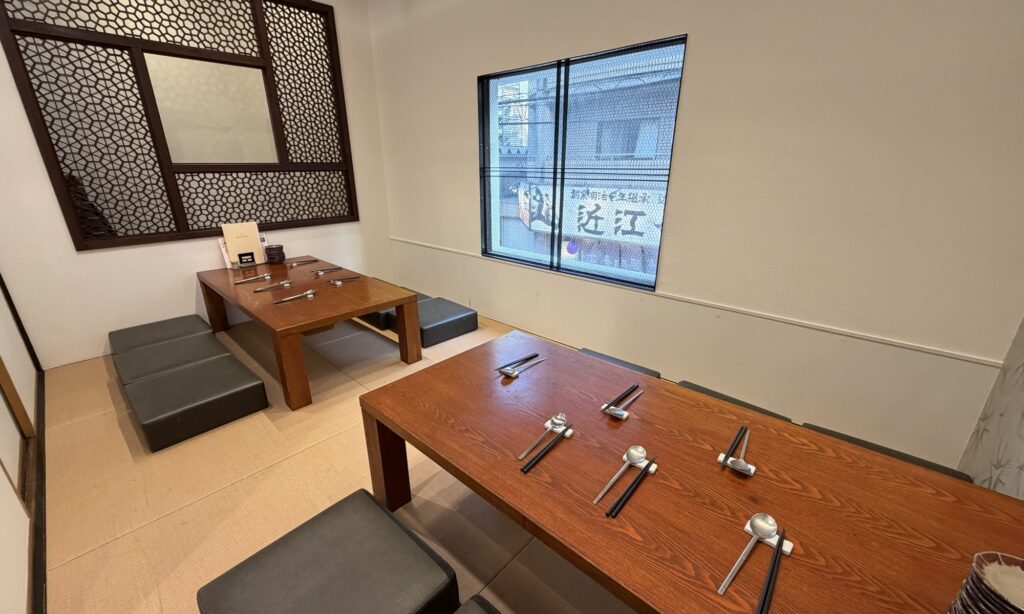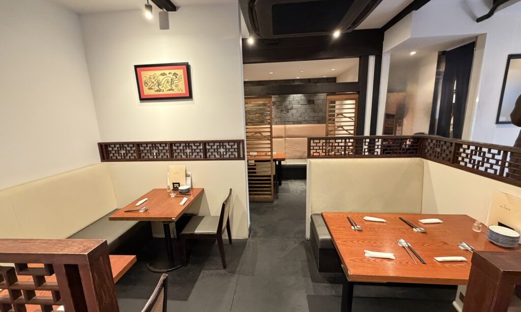 場所はラクト山科の北側にある「旧東海道」を西へすぐ。山科京極の手前にあります。店内は1階のテーブル席、