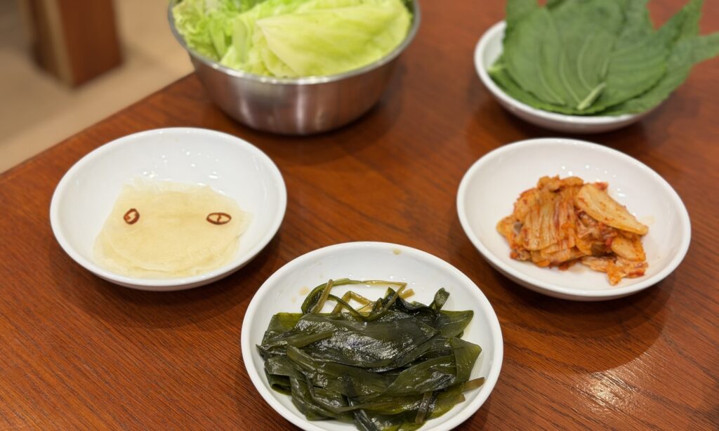 薬味もキムチや大根の酢漬け、胡麻の葉、行者ニンニクなど多彩に揃っているので味変も楽しい。