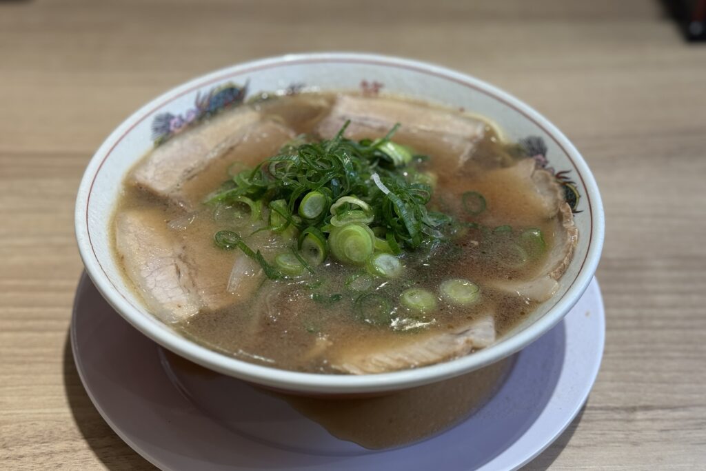 透明感のある豚骨ベースのスープはコクがありながら後味はすっきり。九条ネギのみずみずしい食感がアクセントとなっており、本店と変わらない一杯が楽しめます。