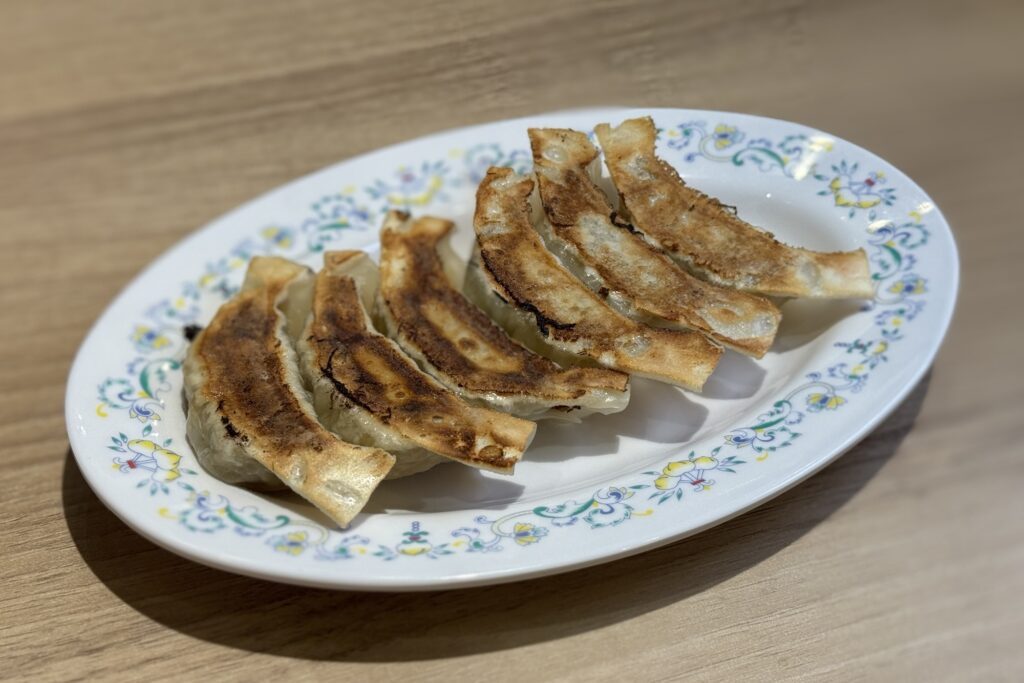 表面はパリッと香ばしく、中はもっちりした皮。肉と野菜のバランスがよく、ラーメンのお供にちょうどいい味わいです。