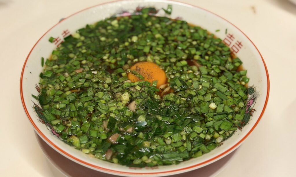 醤油のキレと歯切れの良い麺は相性抜群で、たっぷりのニラがアクセントになっています。